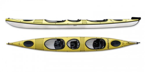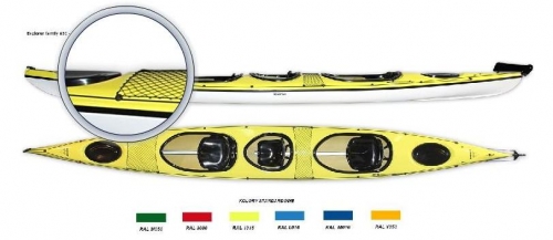 An expedition three-seated kayak with a powerful and rigid structure. There are two seats for adults and the middle one suitable for a child. Designed to travel on various waters. Very capacious, safe and comfortable for all three kayakers. The middle cockpit can be used as an extra storage space, protected by the transport cover will be safe from water and you gain an additional storage room. The model has broadened our offer in 2007.