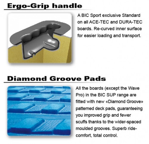 Designed for light weight riders in waves and on flat water, the 9’4’’ DURA-TEC SUP is a highly versatile board and is particularly at home in waves. Its compact shape makes it stable and simple to ride despite its relatively small size. An excellent SUP to get kids and petite riders started. New ERGO-GRIP carry handle = Easier Transport + Less Fatigue!