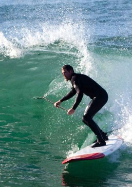 The Bullet works well in all surf but when the waves are 5' and smaller and really open faced, the board will speed thru the flat spots of the wave. It has great down the line drive and is one of the most stable short boards available. The bottom has a single concave thru the nose to mild double which fades out in the quad fin area and then vee thru the tail. Price includes custom glass fins and polished EVA diamond pad. Vacuum bagged wood sandwich construction, PVC stringer & PVC re-enforced fin boxes are standard (Yes there is real bamboo under the paint for strength ).