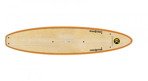 Our testing has found that deck and bottom wood veneer laminates provide the lightest, strongest, least expensive ‘skin’ to complement our featherlight EPS-cored SUPs. These very thin veneer sheets are sandwiched between successive layers of fiberglass and epoxy resin and then pressure molded around the EPS core. This creates a sort of monocoque fuselage, much like an aircraft, in which the skin of the surfboard in effect becomes the stringer or stiffener. We have also changed the finish on our new range of boards to a classic gloss resin surfboard-style finish—no more chipping!