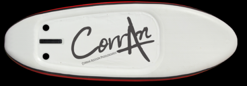 We weren’t going to make an inflatable board until we could be sure to solve all the problems of inflatable boards. And we’ve done just that. Starting with the Streetfighter for the amazing shape, we have built an inflatable that is every bit as rigid as a hard shell board. The Combat is in fact two boards in one. The main board has high sidewalls making it easy to paddle and the construction method allows us to put high pressure into the board so it’s stiff as can be. Then we’ve taken it a step further, adding a carbon/glass exoskeleton to the board. This means that no matter how hard you paddle, the board stays dead stiff, and that translates to a board which are both easier to paddle and handle, and more performing. The floor is a separate board. In fact, it’s just that. It’s a surfboard. The fin is in fact attached to the push-fit surfboard and protrudes through a slot in the main board. This surfboard serves as a lowered standing area for stability and control, but when you get to a surfing wave, you can pull it out and then go out surfing, Yeah. We really thought of everything.