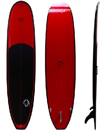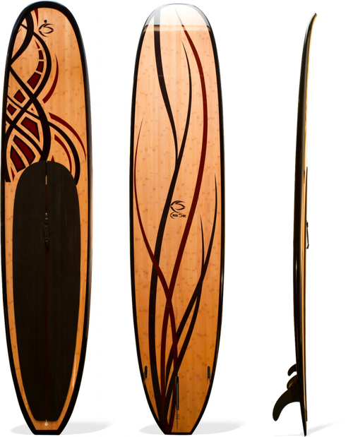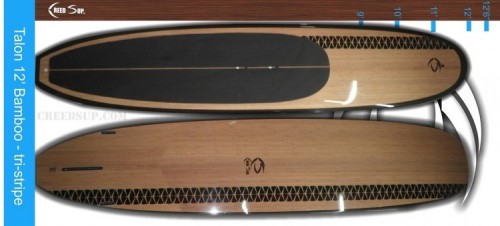 12' Performance Hybrid SUP. "Clear Red" Graphic- Great for a paddlesurf or on flatwater. A very light weight all around performance SUP. 100% Bamboo veneer on top and bottom provide lightweight, durable, and buoyant rigidity. This rigidity provides a more efficient energy transfer, and allows the use of super lightweight EPS foam, providing more buoyancy, speed, and control. Even beginning paddlers immediately feel the difference in Creed SUP bamboo versus competitor models, and never want to go back to a bricky paddleboard. The board is easier to handle in and out of the water. This is a top of the line SUP board that will outperform and outlast standard SUPs. Auto release gore-valve, Go-Pro mount, and Creed SUP's innovative easy carry handle included. 5-7 lbs lighter than competitors models (21%:)