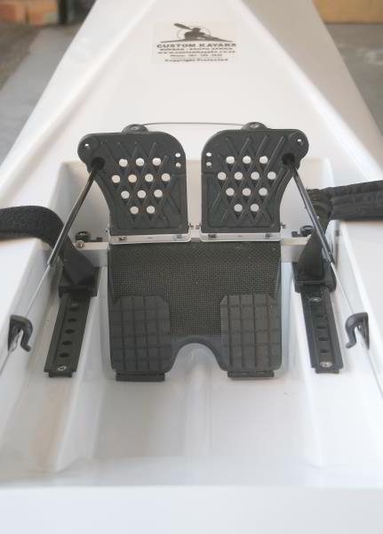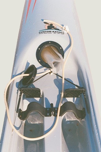 Drain holes in the foot wells to syphen water out of the cockpit while paddling. An optional extra is an adjustable size cockpit (see photograph).
