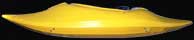 The deck idea is simple. Just the right volume for air and smooth lines cutting through the water. Volume distribution is well tought. There is volume egually distributed around the paddler. Singlebladers kneel and that is why they wheel around their body center axis not around their knees like kayakers. Round wheels drive better, Don't they ?