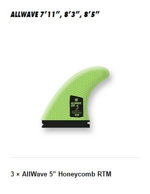 3 × AllWave 5” Thruster Set Honeycomb RTM; 5 × Futures Boxes, FCS Fin System