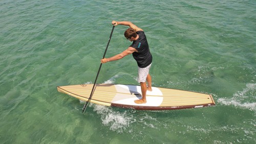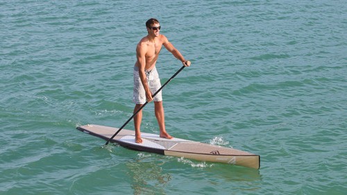 For anyone who enjoys stand alone products, this is their board! The shape is identical to our best seller Fly Race Allround Raceboard 12’6” × 30.5”, the construction is inspired by the legendary and famous speedboats of Boesch / Riva. We built the Fly 12’6” in a clear vision technology based on 3 different wood types. In the bottom we used a unbleached bamboo, the rails were finished with dark colored wedge and the deck is made with a high density resistant version of ash wood.