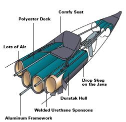This is an excellent warm weather touring kayak. Weighing only 33 lbs with a 15'4" waterline, it is fast, lively, and maneuverable. A drop-skeg is part of the framework and is necessary for tracking. Stow gear on the bow and stern decks. With the sit-on-top kayak, your center of gravity is higher. To provide stability, the Java has an ample beam. If you'd like to paddle with a friend occasionally, there is an easy add-on second seat kit.