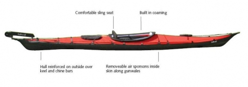 Nylon spray skirt, sea sock, pivot foot pedals, rudder, small bow & large stern hatch, repair kit, pack bag, assembly video, illustrated instructions