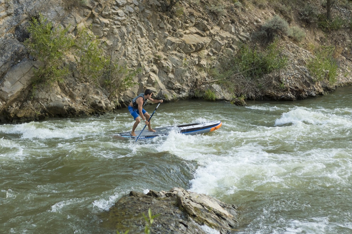“Drop Stitch” refers to a method of construction that allows for much higher inflation pressures. Thousands of tiny threads connect the top and bottom layers of the deck, counterbalancing air pressure when it is inflated. This allows for remarkable structural rigidity (and increased performance) without sacrificing portability.