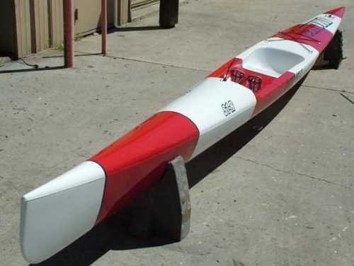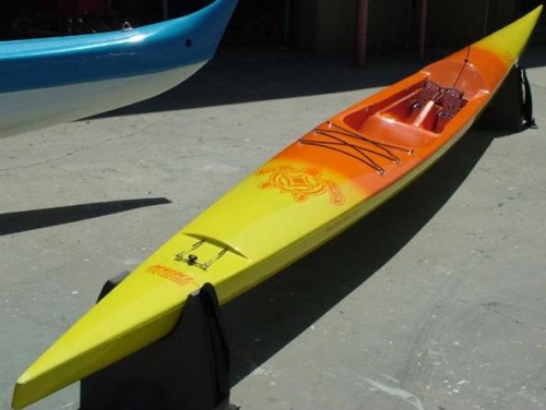 Designed and shaped in early 2005 by Jerry Montgomery with computer aided techniques developed here at HUKI, the HUKI S1-R went into production in April of the same year. I wanted to develop a ski with a great deal more stability than our other two surf skis. I wanted a big bump boat that wouldn't toss me off in a messy sea. Something that would surf and maneuver well. Jerry and I went back to our S1-X for the successful shapes that produced the best performing surf ski in the world. We made her a little beamier and a foot shorter and we gave her a little more volume. The result is the new HUKI S1-R that has been tested in some BIG 4-6 foot windchop, mixed slop and current, by very experienced paddlers and novices alike.