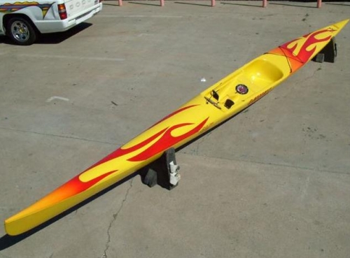 Her foot well system is unique. We offer single or individual foot-wells and can attach the steering cables to the pedals from the foot-well divider or from the gunwales, it's up to you. Our single foot well can save some weight in construction materials and will place the feet and knees close together for those people who're used to a tight body position. We have an adjustable foot well system so that people of different heights can use the same boat. We have a couple other foot-wells developed to fill the needs of customers with even greater custom requests. Each of our foot well systems places the heels of the feet directly on the bottom of the hull for maximum comfort and stability.