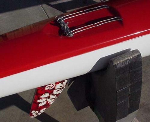 The HUKI V2-A ama is highly rockered with lots of volume so it won't bury when the going gets rough. This ama skims the surface like it should. The iako set fits into the main canoe with a "detent button" and has two adjustment settings, stable and more stable. Adjust ama pitch and main canoe roll with adjustment knobs.