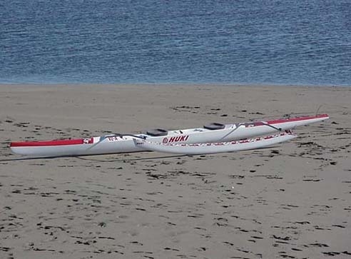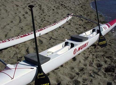 The HUKI V2-A was designed by myself (Jude Turczynski), and Jerry Montgomery in the year 2000. Inspired by a balsa wood OC-2 which was designed & built by myself in 1991 with lots of Jerry's advice & assistance, Jerry & I wanted to incorporate some of the features that made that wooden canoe surf waves and glide on the flats. The result is an "all conditions" canoe with lots of rocker and just the right amount of fineness in the ends.