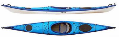 At 14' long and 21.5" wide, it is a perfectly downsized sea kayak. It is outfitted with a round rubber hatch in the front, and an oval rubber hatch in the rear, giving this boat great overnight appeal. Two concave fiberglass bulkheads create dry storage and flotation space in the bow and stern. A retractable skeg is standard for the days when the weather won't cooperated. Built with the Impex philosophy of higher initial stability, this boat gives a very comfortable ride without sacrificing performance. Match this perfectly sized boat to your body and ability and watch as you lead the pack of oversized kayaks and over worked paddlers.