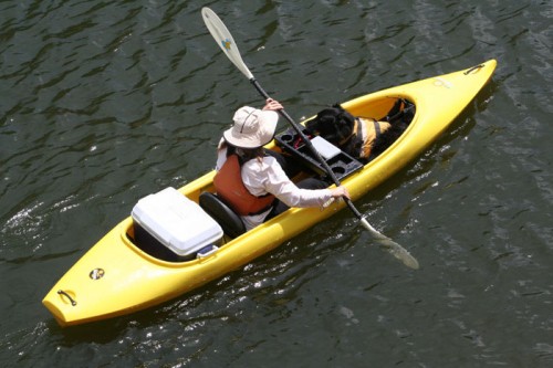 Dryer, more stable, stronger, fun and supremely comfortable for those fun days at the lake and even on moving water! Our deck is designed for dry storage with drybags included and an optional ‘mini-skirt’ that allows you to keep even dryer on those wavy days. With a lower center of gravity than most canoes, and additional stability gained using a two-bladed kayak paddle, the Daytripper is far more stable than most water craft. With the addition of the fishing tray that play’s host to fishing tackle, drinks and fishing rod holders, the Daytripper was designed for fun. Topping it all off are the comfortable and dry DayTripper removable seats. These tough, comfy, folding chairs keep you’re center of gravity low in the kayak and butt off any water that gets in. No more uncomfortable kneeling! The adjustable foot rests allow for custom comfort for every length of leg.