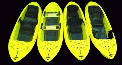 The modular construction of the Caribe allows for many uses from a single kayak. Whether you wish to configure it as a canoe, fishing vessel, dive platform, tandem sit-on-top, solo sit-on-top, or paddle it bare, the Caribe will accommodate your paddling needs. As with all Kiwi sit-on-top and canoe models, the clear cockpit can be replaced after years of wear, allowing for rejuvenation without the expense of replacing the entire kayak.