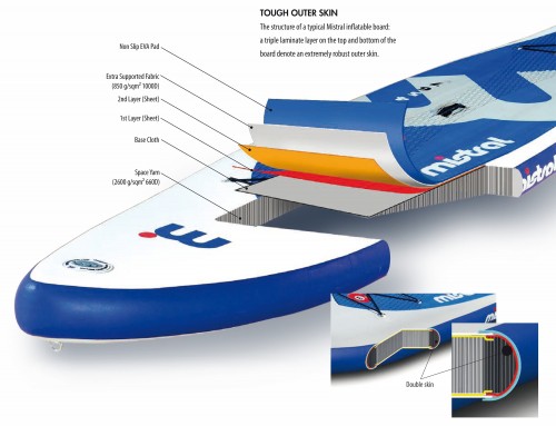 There are inflatables on the market with a smaller price tag but remember, you always get what you pay for! As you trust the board that keeps you afloat it is wise to do your home work first and make sure the board you are buying is strong, very durable, well constructed and a reliable travel companion. Mistral inflatable SUP boards are made using heavy duty pvc, hardened rubber materials and have multiple layers of urethane, polymer and uv protection to create a protective barrier around a drop stitch core.