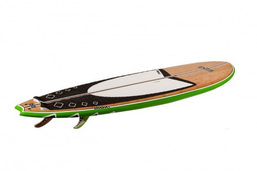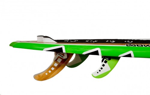 Super light EPS foam (16 kgm3). Best resin and epoxy cloth: 200g inside and 200g reinforcement outside. Clear coat UV proof. High quality bamboo. Special layer reinforcement in the foot zone. Extra pvc reinforcement on all fin boxes, double leash plug. Low density EPS (55 kg). 3M system adhesive pad. Heavy duty fin boxes. Bamboo single fin and solid glass for the side fins.