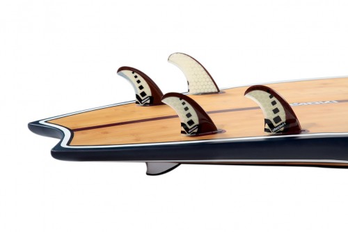 •Bamboo single fin and honeycomb core and epoxy for the side fins. Double leash plugs.