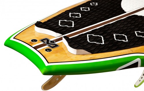 Super light EPS foam (16 kgm3). Best resin and epoxy cloth: 200 g inside and 200 g reinforcement outside. Clearcoat UV proof. High quality bamboo. Special layer reinforcement in the foot zone. Extra pvc reinforcement on all fin boxes, double leash plug. Low density EPS (55 kg). 3M system adhesive pad. Heavy duty fin boxes. Bamboo single fin and solid glass for the side fins.