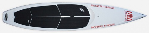 Deck: The forward part of the deck is designed to shed water and is an extension of the wave piercing style nose. The standing area is fairly flat to allow excellent mobility while paddling and surfing waves. The standing area is recessed a bit to lower the paddler’s center of gravity.