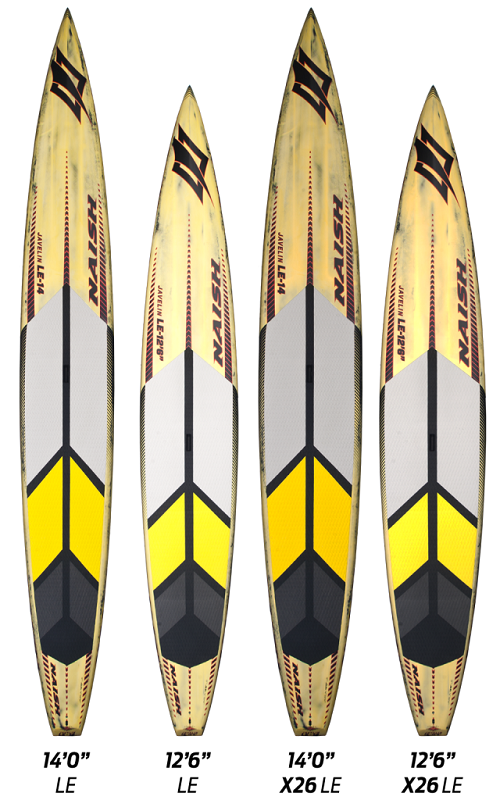 Limited Edition, ultra lightweight boards designed for expert level racing and professional competition. Javelin LE boards are expert level, Limited Edition race designs for professional competition. They feature a state-of-the-art rocker line and an exceptionally narrow outline for lightning fast acceleration and ultimate gliding speed. All Javelin LE boards are constructed using a revolutionary carbon sandwich technology, which makes them extremely stiff and ultra lightweight.