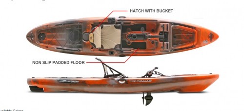 The Slayer hull was crafted to ensure that it can get you to the fish in all types of waters. As a self-bailing sit on top, the hull stays dry on oceans, lakes, and rivers. Plus the low draft lets you get through super skinny water. It is stable enough to ensure you feel safe and comfortable moving around in the raised seating position or even standing to sight cast. It was designed with a clear deck to prevent tangled lines and smooth sides to reduce hull slap. The hull tracks with precision and maneuvers easily but it is also rudder ready for those looking to boost the tracking and turning capabilities even further.