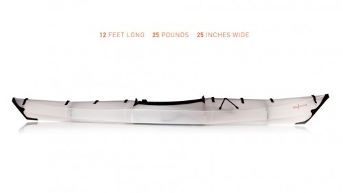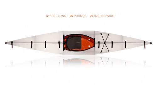 BOAT: the Oru Kayak is 12’ long, 25” wide, and 13” high. The cockpit is reinforced, and the seat and backrest are padded.