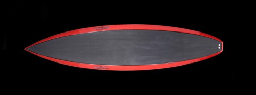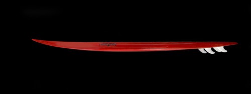 The SG1 features a flat deck to provide a solid platform to plant ones feet. Rocker is continuous from the nose to the tail, made to fit a steeper faster wave with a late takeoff. The bottom contours project an aggressive V that continues through the tail for fast and responsive turns.