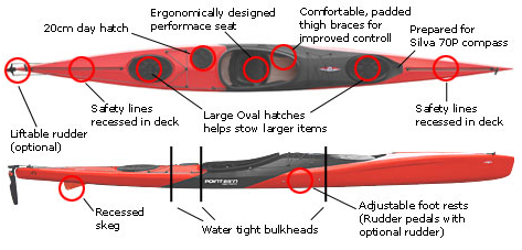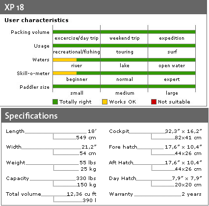The redesigned cockpit is longer and wider for powerful strokes through optimal legroom as well as increased comfort during entry and exit. Store heavy gear in the two large oval hatches, lighter bags for your small essentials in the large 20cm day hatch. Also unique to the XP 18 are the recessed safety lines in the bow and stern, accentuating its ultra sleek look. It comes with a retractable skeg, footrests, and a compass recess on the foredeck (the Silva 70P compass is optional).