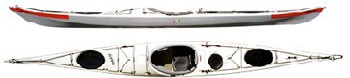 The efforts of the designers have been concentrated on the shape of the hull where the innovation and the tradition live together. The sharp edges, present in many eskimo kayaks, together with the round profile of the final part of the keel allow, to this new boat, a very surprising maneuvrability as well as a very good course holding. Sea Wolf is therefore a sea-kayak very stable and fast; the considerable loading capacity, mainly due to the presence of two oval peaks, doesnÕt penalize at all its excellent water sliding and consequently its good cruising speed. Sea Wolf is finally a sea-kayak suitable for challenging expeditions with load on board.