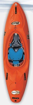 Designed to handle "pushy" high volume whitewater, the Magnum's large volume and rocker profile keep the kayak on top of the water and aid with resurfacing after a drop. The shallow V shaped hull and smooth rocker transition help with directional speed while the new hull grooves aid tracking. The Magnum's longer length and width distribution make it fast and stable. The perfect high volume, steep gradient assault vehicle.