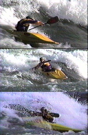 Riot/Rip made an underground video shot mostly on the Lachine wave. Until then, nobody had ever seen seen flatspins on green waves - certainly not clean hand 360's and endless side surfs on green waves... The video clearly marked Corran's proof-of-concept of the planing kayak hull.