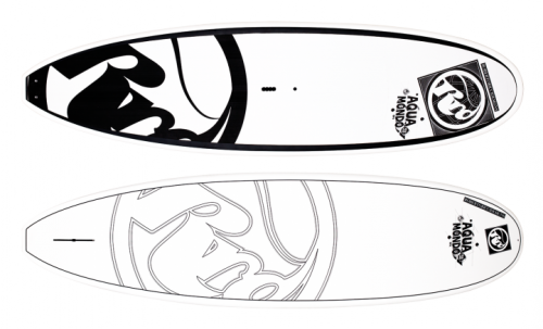 Extremely stable all-round boards, 33” (83,5 cms) inches wide, the Aquamondos provide extra ease of paddling through any water surface. Extremely Easy to paddle on flat water of to be used on surf, the Aquamondo shapes have a slightly thinner rails design to allow easier carving on surf and enhance manoeuvrability. It’s a compact, very well balanced shape that fits both lightweight and heavyweight riders, willing to paddle a very versatile, comfortable, accessible board without sacrificing manoeuvrability on surf. Fin: Dolphin 9,5 US box