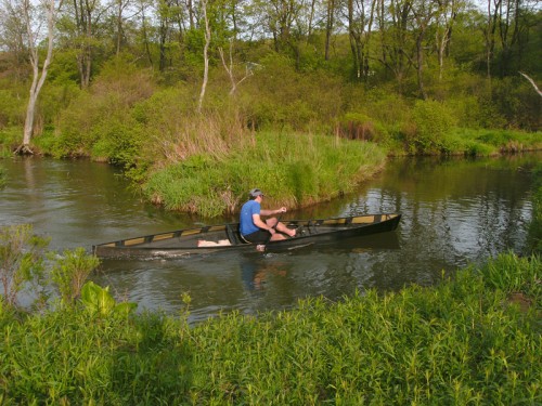 This is a great solo tripping canoe for lakes and rivers of all types. The sleek lines and light weight makes it probably the fastest tripping cruising canoe of its kind. The extra volume above the water line gives for a great secondary stability for leaning and carving turn while going through class II whitewater. It also meets the specs for the stock racing class. The tucked in gunwales makes for a comfortable paddling and the flared bow sheds the water on choppy lakes and whitewater. At the end of the day its light weight makes it an easy carry back to the car or cottage. Whether a quick trip around the lake for a workout, a day of fishing, or a week long wilderness trip the Blackwater is a great boat of choice.