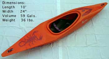 As the first truly hybrid playboat, the Scorpion quickly became one of the most emulated kayaks in recent history. Taking the paddling world by storm, the Scorpion was immediately recognized as the next step in boat evolution. 3 & 1/2 years later it remains unequaled in its class. Combining blinding speed and acceleration with exhilarating fast responsiveness, the Scorpion continues to dominate the rodeo circuit worldwide. Intended originally for intermediate-expert paddlers, the Scorpion has become a favorite choice among instructors and students alike.