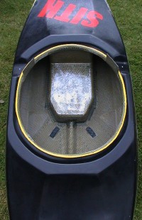 The outfitting is basic, but excellent, a moulded in composite saddle, C-pillars in the frontal area of the cockpit and crotch stap anchors already glassesd in. All that's needed is add some foam to the C-pillars and the back of the saddle to get your trim right and to lock your knees down, install some thigh straps and you are good to go. It is very comfortable, particularly for a boat with a saddle height of less than 6", I can be in it for at least 1.5 hours before I need to get out to stretch my legs.