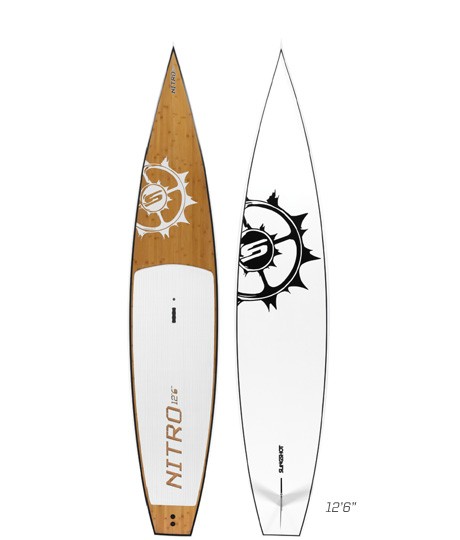 Three years in development, the Nitro is built for performance touring. This board delivers maximum glide, stability and speed for fitness paddling, recreational racing, or flatwater touring. The Nitro’s displacement bow cuts through the water providing a smooth ride, combined with an innovative double concave planning hull that flows into a slight V in the tail. This shape provides stability, control and helps maintain an efficient stroke. Based on Slingshot’s Future Response Technology the Nitro is built with Carbon Epoxy Wood Veneer Sandwich construction. (CWVS). This proprietary construction controls the durability, flex and overall strength of the board without adding extra weight. The result is a proven, lightweight, impact resistant board.