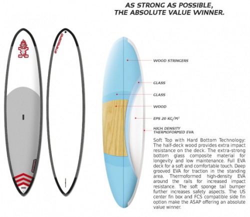 toughened through a thermoform process which increases the surface density. The soft-sponge tail bumper further increases safety aspects. The US center fin box and FCS compatible side fin option makes the ASAP offering an absolute value winner.