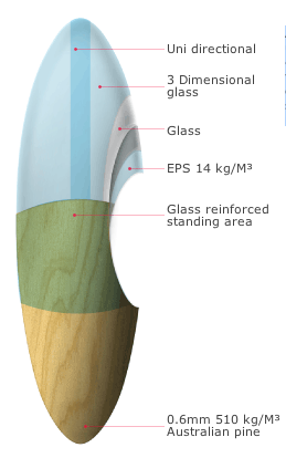 AST technology features a light-weight EPS core and uses layers of three-dimensional 400g glass mat wetted out with an expanding epoxy resin system that creates volume within the skin as it cures under pressure. This creates a thick, stiff, durable, yet light-weight sandwiched laminate. A half-deck wood layer improves rigidity and deck impact resistance.