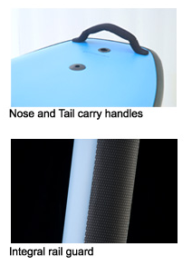 A great entry level and school SUP. Complete with nose, tail and center carry handles along with rail protection.