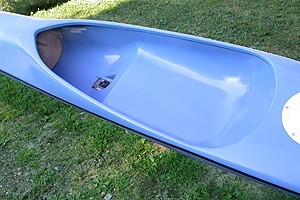 Standard construction is autoclave cured carbon/core/epoxy for a new level of strength, stiffness and light weight. A range of options will customize the Mohican to your preferences. The standard rudder is under the boat for best control in open water conditions. For shallow water a kick up rudder that automatically sheds weeds is an option or both can be supplied. A 6" inspection port behind the cockpit is useful for storing a PFD and water and can be fitted with a canvas bag to keep valuables and food handy. You have a choice of tiller or foot pedal steering. Bungees can be rigged for carrying gear on deck. The standard finish is a blue linear polyurethane gelcoat that is tough and highly UV resistant, making a cover un-necessary.