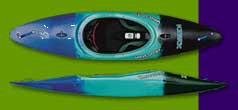 The first design to feature a semi-planing hull that lets it surf well (for an old kayak) and perform the older play moves (enders, etc.