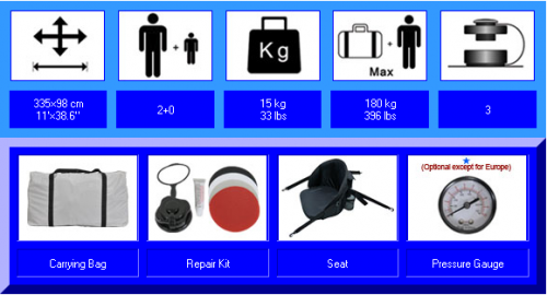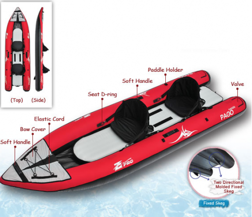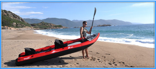 A fantastic combination a kayak and a sit on top.The most versatile craft in this price range, the Pago provides an unprecedented gliding experience.Discover the sea shores and taste simultaneously the thrills of observing the underwater world. Ideal for recreational paddling, snorkeling and fishing. There is space in the stern of this model for plenty of extra gear. Suitable for beginners as well as experienced paddlers. Its catamaran shape and high positioned floor, along with 2 molded skeg's on the bottom of the side chambers, generate very little drag on the water and provide easy paddling and straight tracking even with windy and choppy water conditions. Designed and constructed to be used on rivers, lakes and at the sea shore. ● Floor cover + top hull of side chambers: made of extra strong 840 denier Nylon Oxford with Polyurethane coating.