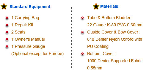 ● The multiple D-rings on the side tubes, and the adjustable straps on the seats,allow for the seats to be moved for either 1 or 2 person use of the kayak.