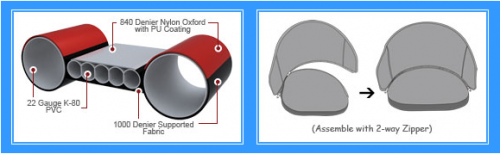 ● Bottom and one third outer-side chambers are made of 1000 denier super tough supported fabric: