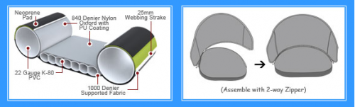 ● Bottom and one third outer-side chambers are made of 1000 denier super tough supported fabric: