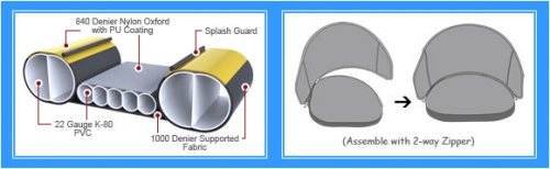 ● Strong zippers on main chambers and floor:practical access to inner hull for replacement and/or repair of inflatable bladders.