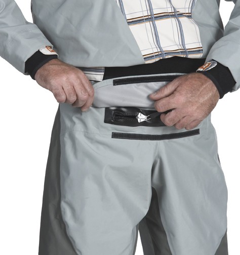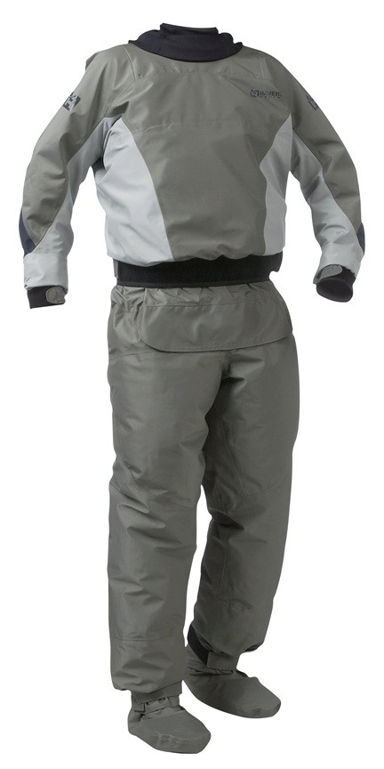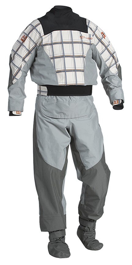 Our premier dry suit. Build upon the Comp LX platform. Ergonomically cut pants, and the jacket is articulated for a paddling position. Fabric booties. Back entry zip for the driest seal with a skirt tunnel and most comfort while paddling. Relief fly zip. Pattern designed to have zero 4-way cross seams- a classic leaky spot on seam sealed garments. Every seam on the entire suit is hand-trimmed to 1/8th of an inch to ensure maximum seam tape contact.