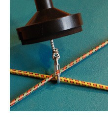 In an emergency or on more stable surfaces, a Kayalite can quickly and easily clip on to one or more taut bungee cords (as shown at right).